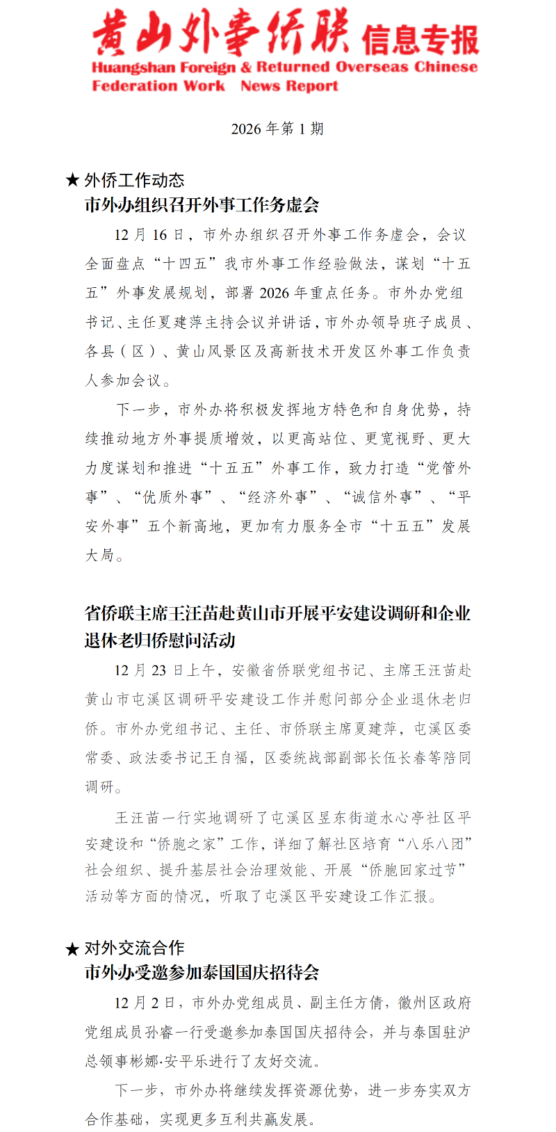 黄山外事侨联信息专报2026年第1期