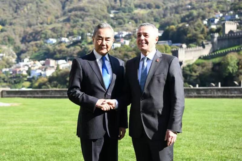 当地时间2025年10月10日,中共中央政治局委员、外交部长王毅在瑞士贝林佐纳同瑞士联邦委员兼外长卡西斯举行中瑞第四轮外长级战略对话。
